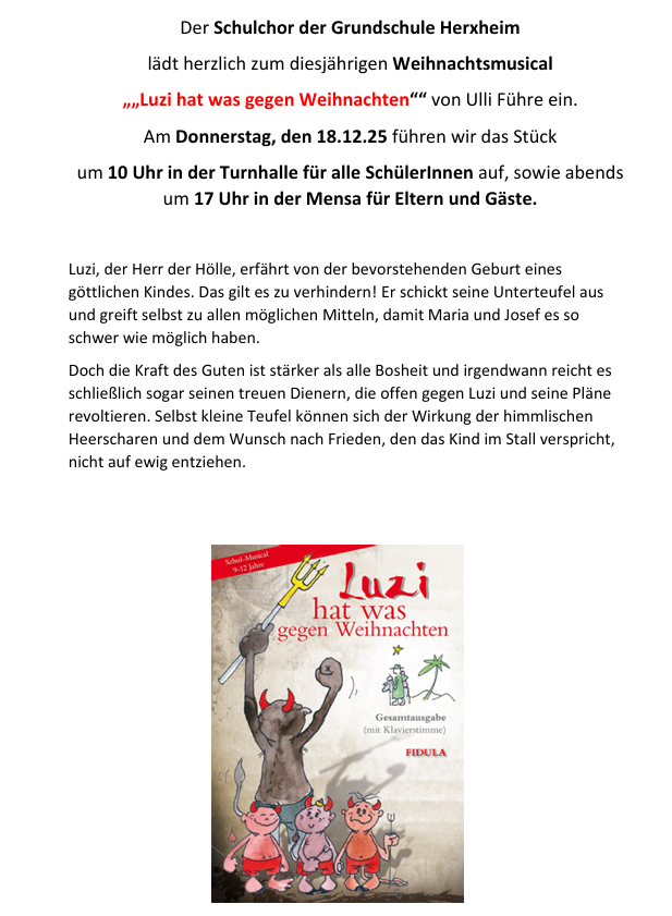 Der Schulchor der Grundschule Herxheim war im vergangenen Schuljahr außerhalb des Schulgeländes musikalisch aktiv in Herxheim unterwegs. Zuerst durfte der Chor zu Gast in der evangelischen Kirche sein. Am 05.12.24 wurde der Altarraum als Bühne für das diesjährige Weihnachtsmusical „Wenn Engel singen“ umfunktioniert.