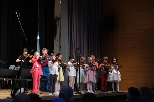 20 Jahre Streicherklasse Herxheim! Das war für die Kreismusikschule Südliche Weinstraße (KMS) und die Grundschule Herxheim ein bedeutendes Jubiläum und daher Anlass zu feiern. Dem Festakt in der Elmar-Weiller-Festhalle am Freitag, 6. Juni 2025 wohnten viele musikbegeisterte Menschen bei. Die etwa zweistündige Festveranstaltung würdigte die langjährige Kooperation der Musikschule in Trägerschaft des Kreises Südliche Weinstraße und der Grundschule in Trägerschaft der Verbandsgemeinde Herxheim. Auch der im vergangenen Jahr verstorbenen Annett Sinnwell, der ersten und langjährigen Lehrerin der Herxheimer Streicherklassen, und ihres musikalischen Erbes sollte gedacht werden. Grundschülerinnen und Grundschüler gaben gemeinsam mit ihrem Musiklehrer Til Kramm Kostproben ihres Könnens. Auch das Junge Orchester der KMS, in welchem ehemalige Schülerinnen und Schüler der Herxheimer Streicherklasse mitwirken, und das unter der Leitung von Margarethe Hoffer stand, präsentierte sich hervorragend. Der musikalische Schwerpunkt des Abends lag dann auf einem rund 45-minütigen Konzert des Deutsch-Französischen Kammerorchesters der KMS unter Marc Bender, in welchem ältere Schülerinnen und Schüler mitwirkten. In der Streicherklasse der Herxheimer Grundschule machen seit 20 Jahren Kinder der ersten und zweiten Klassenstufe die ersten Schritte, um Geige oder Bratsche zu lernen. Der Musikunterricht in dieser Klasse findet von Anfang an mit dem Instrument in der Hand statt. Eine Lehrkraft der Kreismusikschule, derzeit Til Kramm, gibt diese besondere Unterrichtsstunden im Rahmen des regulären Stundenplans der Grundschule Herxheim. Wer nach der zweiten Klasse weitermachen möchte, kann an der Kreismusikschule Südliche Weinstraße Gruppen- oder Einzelunterricht nehmen. Dieser findet dann am Nachmittag in den Räumlichkeiten der Grundschule stattfindet. Initiiert wurde diese Kooperation im Jahr 2005 vom damaligen Leiter der Herxheimer Grundschule, Dr. Klaus Eichenlaub, und der damaligen Leiterin der Kreismusikschule Südliche Weinstraße, Cornelia Hoffmann.